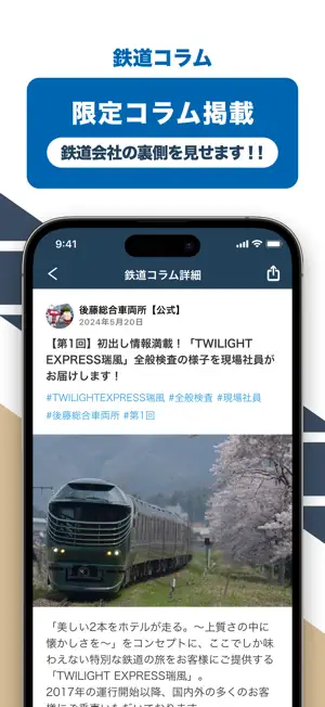 こだわりの鉄道写真や旅の思い出を共有したり、鉄道の耳寄り情報をチェックしたりして、あなたの鉄道の世界をもっと広げましょう。