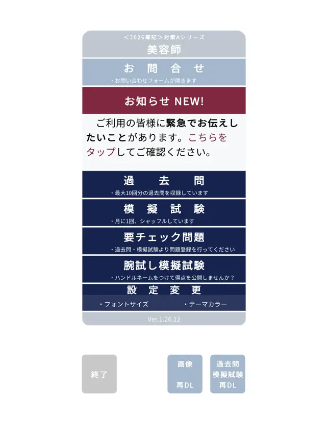 最新の過去問までできるのでよかったのですが、アプリを起動するたびにデータダウンロードので確認が出てきてやさしさだろうが、ゲームではなく試験のためにやるものなのでそこを渋る人は中々いないと思うのでいらないのでは?とは思いました。問題文の修正報告や間違えたとこをGoogleで調べられるツールがあったりと使いやすかったりはするのですが、なんせみにくくてわかりづらいです。
