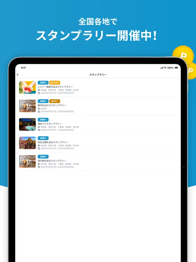 ここよりは、全国各地のお出かけ先でスタンプラリーがたのしめるアプリです。