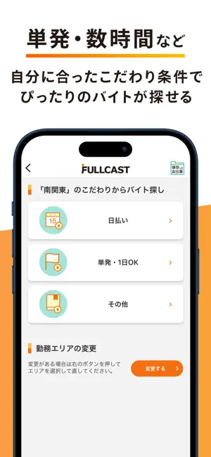 キャストポータルは、登録制人材サービスのフルキャストが運営する日払いバイト、単発バイトを中心に豊富な求人情報数を持つ短期バイト・派遣アプリです。