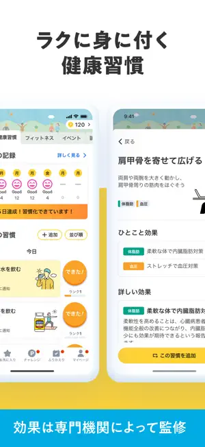 ・簡単にできる専門機関監修の健康行動で、習慣化をサポート!