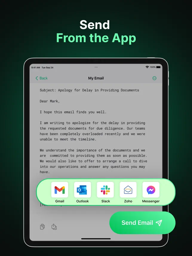 最新AIを搭載した当社のアプリは、パーソナライズされた提案とシナリオを提供し、より良い文章を、より速く、より効率的に書くことを支援します。このアプリは、メールの作成から校正までを完全にサポートし、文章創作を改善するための提案をします。