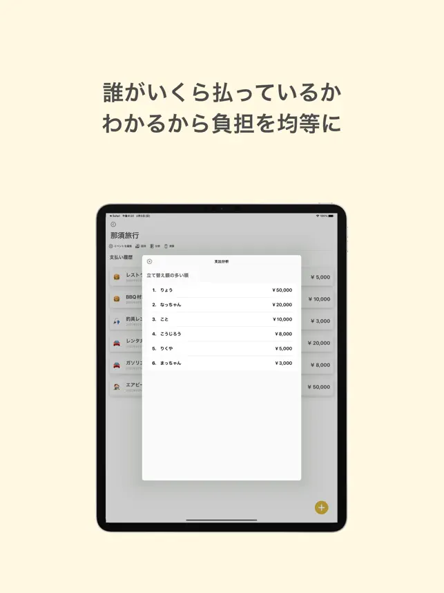 ・旅行・イベント・飲み会の支払い記録をつけて、最後に精算する