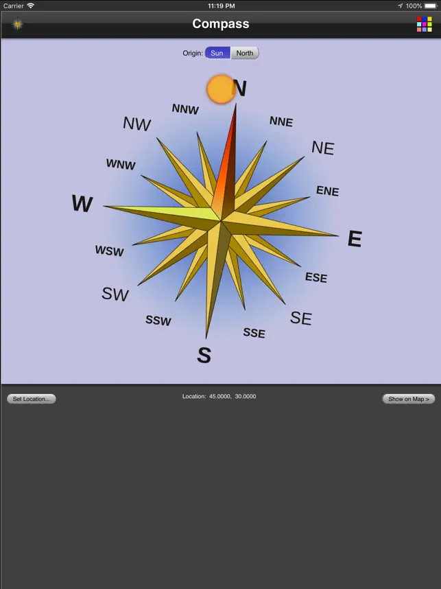 This application adds the a compass to your device. It either uses the built in magnetic compass (if available) or provides a sun compass (You just have to see the sun and know the time to determine the north direction). Use it for all your outdoor activities whether it's hiking, biking or for a boy scout camp. The sun compass is not affected by magnetic anomalies.