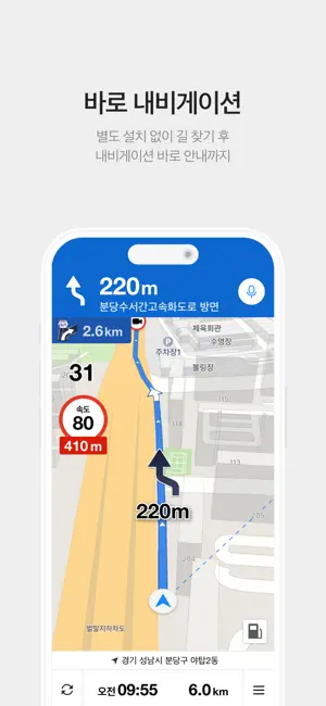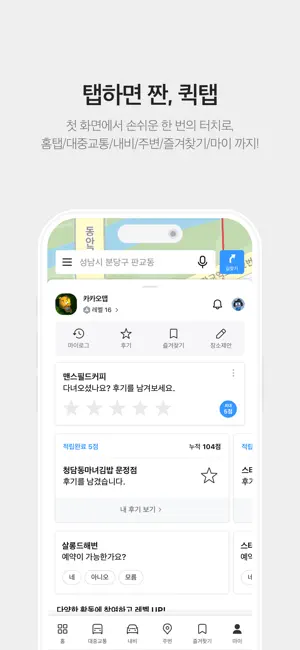 No need to install a separate navigation app. When you search for a route, KakaoMap will give you navigation directions right away.