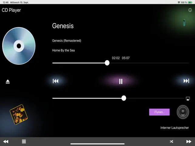 Use this CD Player as alternative Music Player. There is a complete iPod-control integrated and you have control on your whole music collection. Thereby when you select single track, interprets, albums or playlists a temporary playlist will be created , which remains until the last track is played. This list also remains when you press Pause, terminate the program and restart it later.