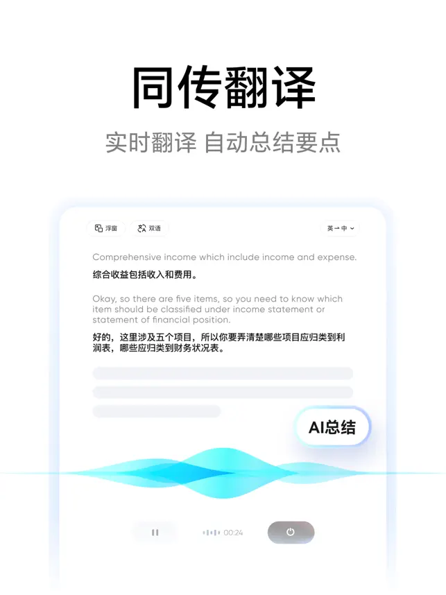 112种语言实时语音翻译,各国口音均可精准识别。自动生成AI总结及思维导图,课后、会后可轻松回顾。