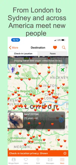 - 100% location-based, 100% GPS dating - verifies that users are real.