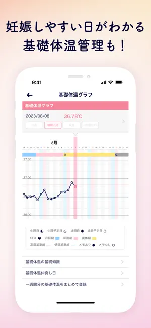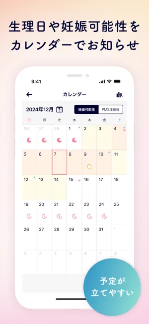 あなたの生理周期に合わせた排卵予定日や妊娠可能性をお知らせします!