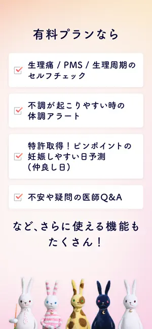 ルナルナが15年以上貯めてきたデータをもとに開発したルナルナ独自の排卵日予測アルゴリズムを提供。(*特許取得済み)