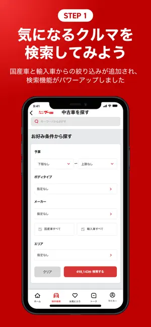 このアプリはすぐに車を買うことが前提だから仕方ないのかも 買った後にも、販売店とのコンタクトやみんカラみたいなその後の情報交換などもアプリでできたらもっと良いですね。 中古車の購入は、別の○ーセンサーと併用して探した結果、たまたまグーネットに載っていた車を選びました。 また、グーシルバークーポンについて、買う事を先に決めないとなかなか話題に出しづらいシステムなのに、商談前に見たことを販売店に伝えないとダメと書いてある。 問い合わせ時点で、グーネットを見たとネットから来店予約をしていても、店舗側からは言わない。これは、ユーザーがあまり使えてないのではと感じる。使いづらい客釣りシステムに騙されてるような感覚になりました。 なので、星5ではありません。