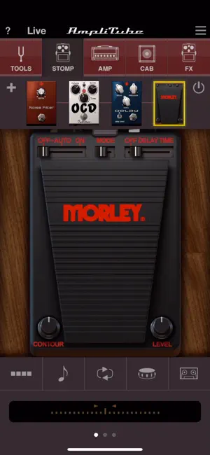 AmpliTube CS for iPhone/iPod touchには標準で7種類のストンプ・エフェクト、3種類のアンプ、3種類のキャビネットと2種類のマイクが含まれ、さらにFender™、ENGL®、Orange®などの著名ブランドや、Joe Satriani、Dimebag Darrell、Brian Mayなどのギター・ヒーローが実際に使用した、総計150種類近いモデリング・ギアを、アプリ内課金により拡張可能です。