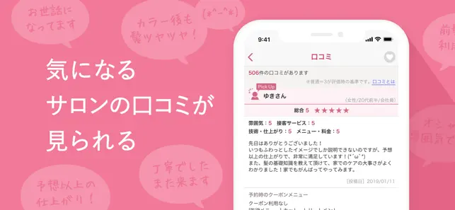 約2,000万の口コミを掲載しているので、サロンの情報が事前にわかります。