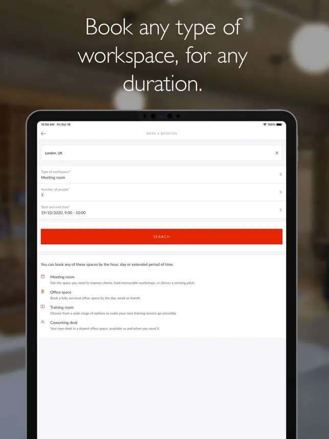 今すぐRegusの無料アカウントを作成し、専用アプリから最寄りの快適なワークスペースをご予約ください。