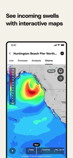 Keep track of current surf conditions. - View live surf cams at 1000+ breaks around the world. - Get daily surf reports from our team of experts. - View wave height, live wind, weather, water temperature, and tide. - Choose to get notified when the conditions are perfect at your favorite spots with Surf Alerts. - Scrub the Wave Timeline to see sets, consistency, and wave height. - View exclusive AI-powered metrics like Crowd and Wave Distribution.