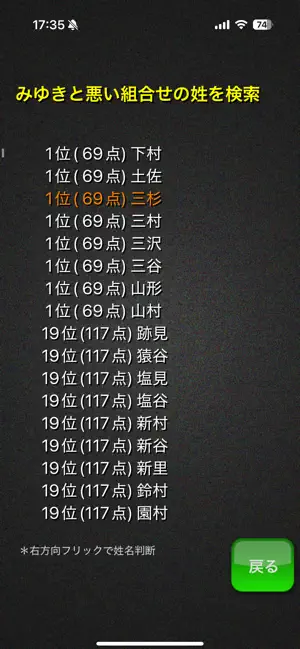 - 便利です シンプルだし、名前や姓から組み合わせると運の良い姓や名前を検索することもできます。