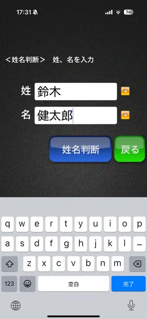 姓名判断を楽しむだけでなく、苗字に対して良い運勢の名を検索する機能を備えています。