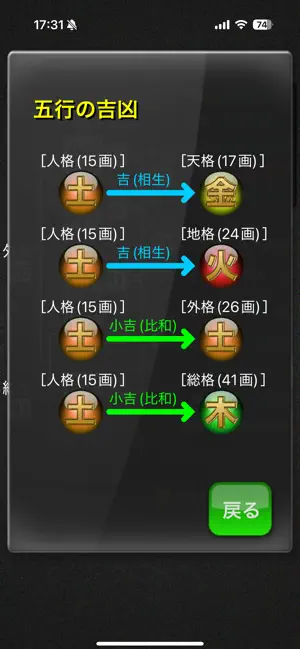 無料のサイト本だと画数だけが主ですが、自動で五行や陰陽などもでてきてくれるのでいいかなっておもってます。