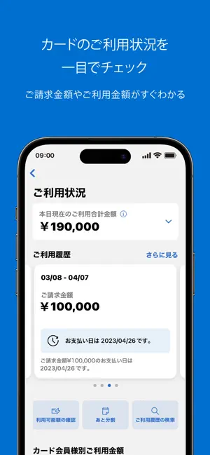 保有されているすべてのアメリカン・エキスプレスのカードご利用金額およびご請求金額をご確認いただけます。