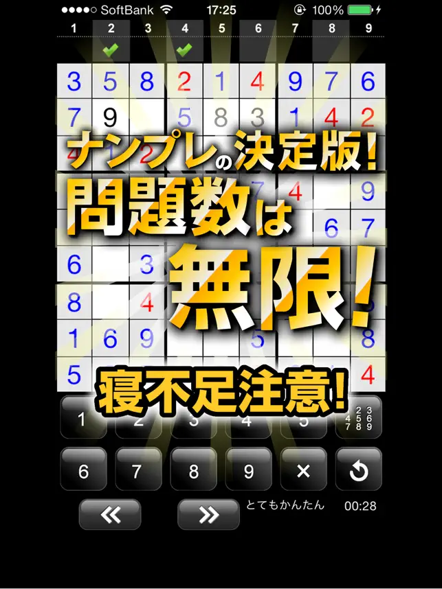 •他のナンプレに比べて電池の消耗が少ないので長時間遊べます。
