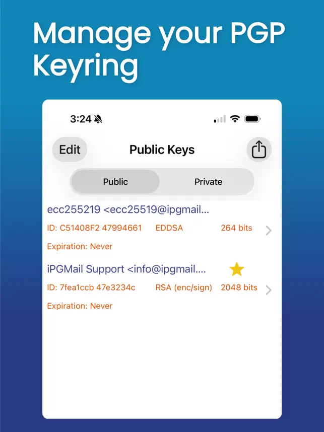 iPGMail makes PGP encryption easy for iOS users. It offers an intuitive interface that enables users to easily send and receive private PGP encrypted messages via email. The app also allows you to encrypt and decrypt files both locally or cloud based.