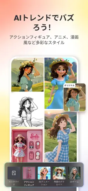 ‒ トレンディな3DカートゥーンやアニメAIアートエフェクトを使用して、自撮りを鮮やかなカートゥーンコミックに簡単に変身させます。