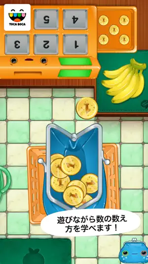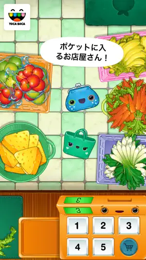 Toca Storeは、お子様の想像力を膨らませ、役になりきる創作力を刺激するお店屋さんごっこアプリです。私たちは、お子様が毎日の生活の中で体験することを疑似体験でき、社会性と数学的なスキルを育めるおもちゃ作りを目指しました。出来上がったのがToca Storeです!