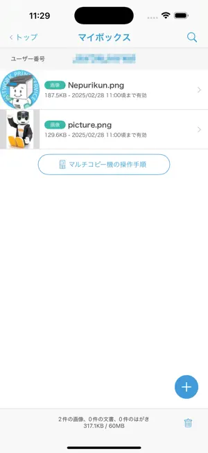 1.プリントしたいファイルをアプリから登録(※事前に会員登録〔無料〕が必要です)