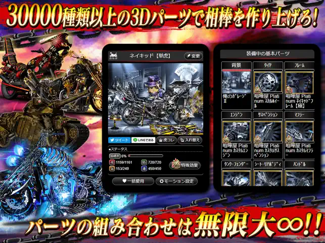 見事勝利して族ランクを上げると、手に入るパーツの幅がどんどん広がるぞ!