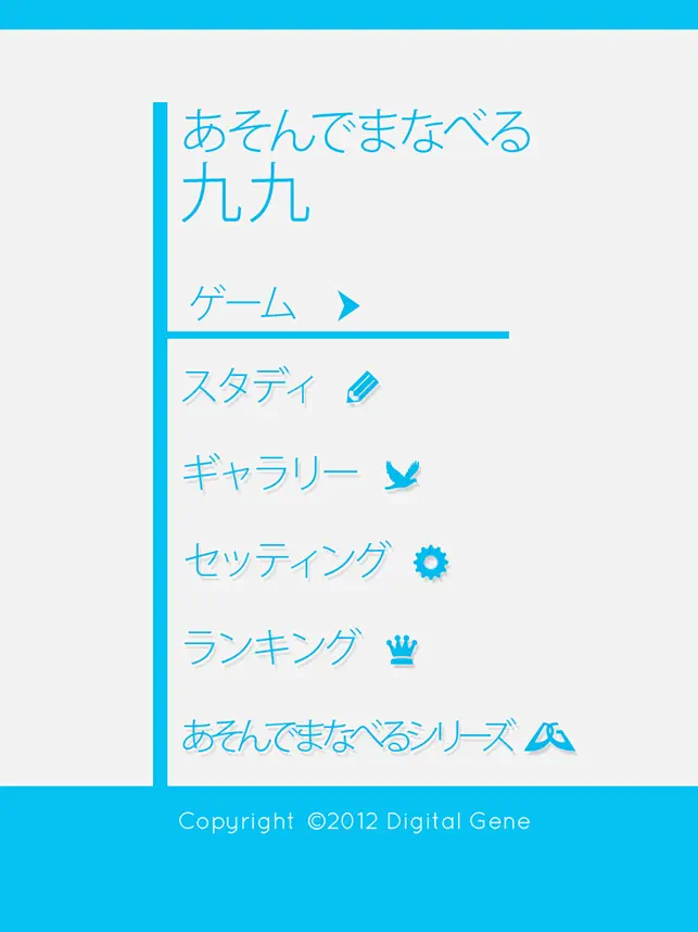 九九を覚えたてのお子様の練習や復習、老化防止のための脳トレにもなるかけ算ゲームアプリです。