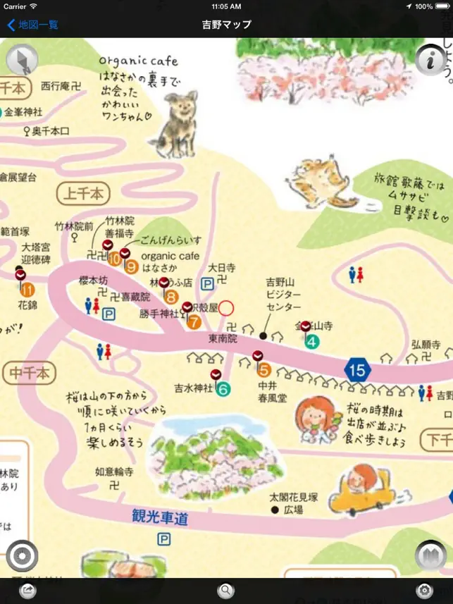 * 地図上のランドマークアイコンには付近のおすすめスポット情報が入っています。