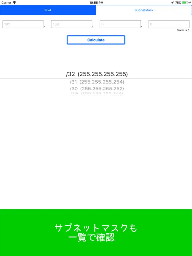 インターネットが使用できない場所でも簡単にIPアドレスの計算をすることができますので、現場での設定作業などに役立ちます。
