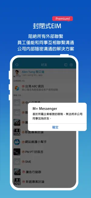 M+ Messenger是一款提供跨平台通訊的即時通訊軟體,不僅讓好友家人可輕鬆聊天,更針對職場通訊提供完善服務!