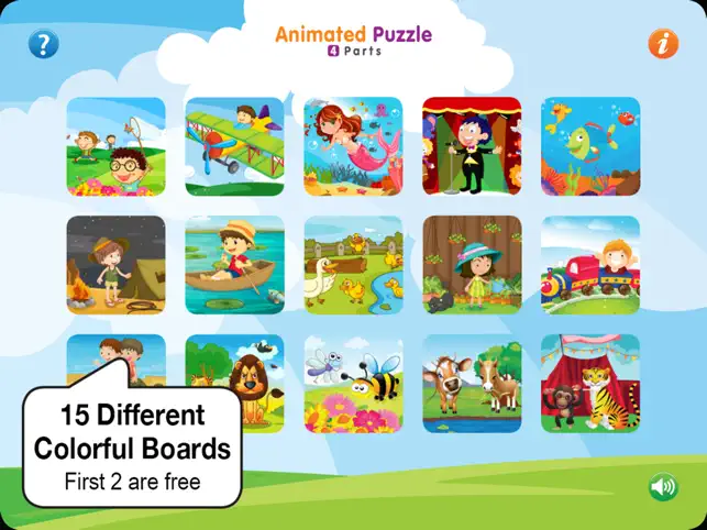 Animated Puzzle 1(4パート) - 3歳以上のお子様向けです。 各ボードは2x2の四角形のマス目です。
