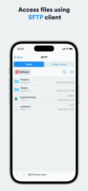 Termius is an SSH client and terminal how it should be. Connect with one tap from any mobile and desktop device—no re-entering IP addresses, ports, and passwords.