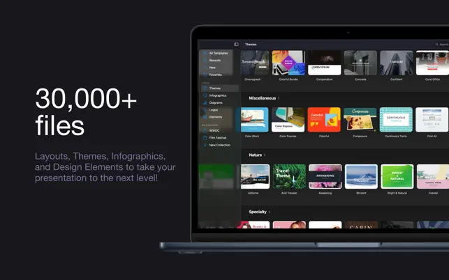 Build stunning presentations—fast. Toolbox for Keynote gives you a curated library of themes, slide templates, graphics, diagrams, infographics, and logos that drop straight into Apple Keynote.