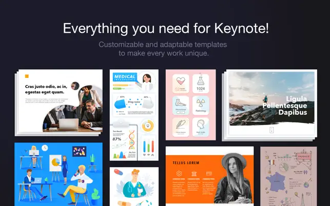 My colleague recommended me to purchse this and I'd say the same for others if you are looking for templates for Keynote.