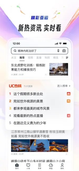 UC专注浏览器20年,成为全球主流第三方手机浏览器。有全面、精准的头条资讯,以及实时搜索热榜,可随时了解身边事。更有精彩视频、丰富小说、搞笑段子、超速网盘,多种娱乐,放松不止一刻。