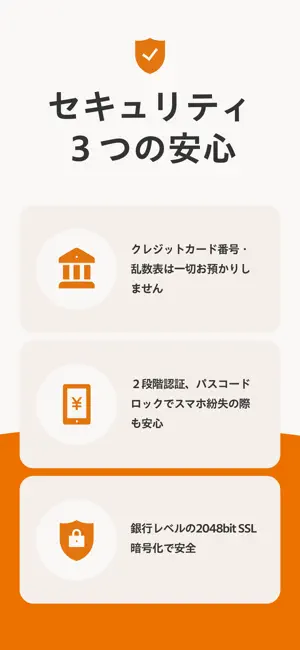 金融機関向けのサービス提供も行っており、常に第三者からの評価・審査を受けてセキュリティ向上に努めております。安心してご利用ください。