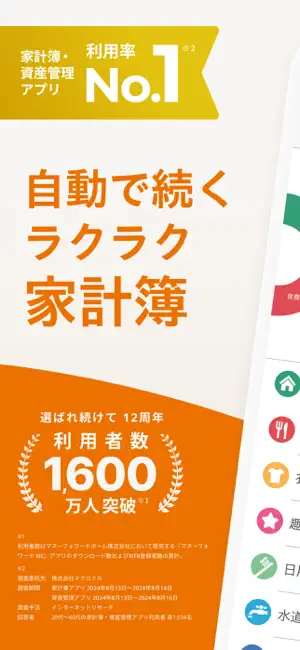 家計簿アプリ・資産管理アプリ 利用率No.1!(*1)