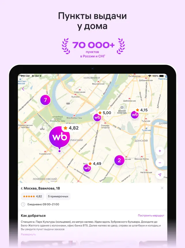• Заказывайте в наши пункты выдачи в 7 странах мира: России, Узбекистане, Казахстане, Кыргызстане, Беларуси, Армении, Грузии. Мы работаем в мегаполисах и регионах, а значит, всегда где-то поблизости: всего уже больше 36 000 пунктов. В России есть курьерская доставка, а местами доставляем в постаматы.
