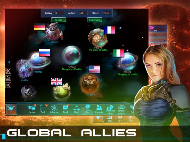 危険な宇宙空間の中で、指揮官となって銀河を探索し、無人星の植民・軍事基地の建設・最強戦艦の建造により戦力を高め、苦境から抜け出そう!艦隊を率いて、様々な戦略を駆使し、連盟と共に全宇宙制覇を目指して戦おう!