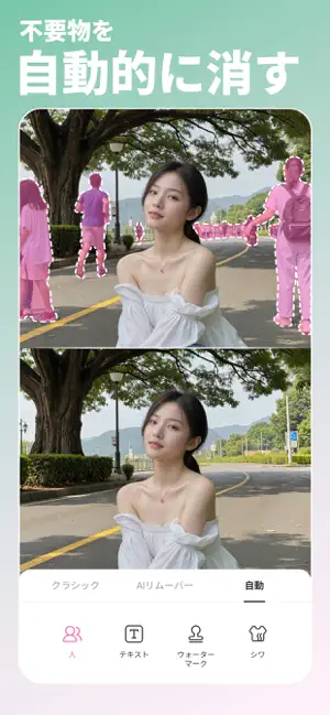 - AIリムーバー:強力な AI と高度な画像処理テクノロジーを使用して、写真から人物、建物、その他の不要なオブジェクトを削除します。