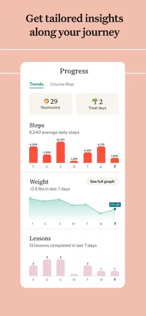 ¹ Based on annual auto-renewing plan for $209 USD. All prices are prior to any applicable sales tax or discounts. In 4 weeks the typical Noom user can expect to lose 1-2 lbs per week. Noom results involve maintaining a healthy diet and exercise changes. Individual results may vary