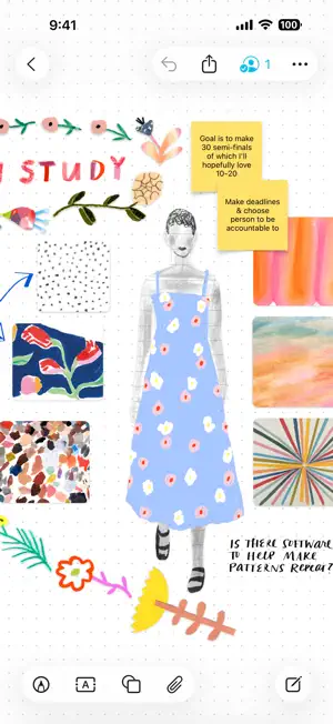 フリーボードはアイデアを形にする絶好の場所です。ほぼすべての種類のファイルに対応している柔軟なキャンバスで、プロジェクトの概要を作成したり、ムードボードをデザインしたり、ブレーンストーミングセッションを始めたりできます。さらにiCloudを使えば、Mac、iPad、iPhoneのどのデバイスを使用していてもすべてのボードが同期されます。