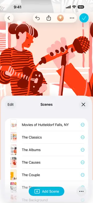 • キャンバス上ではどこでも指先で描画でき、対応するiPadならApple Pencilも使用できます。用意されているさまざまなブラシスタイルやカラーから選びましょう。
