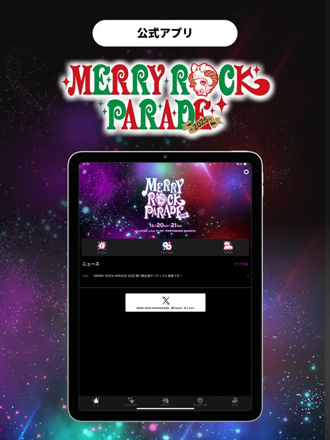 出演アーティストやタイムテーブル、チケットの発券・入場、会場マップやインフォメーションなど、イベントを便利に楽しむための情報・機能を搭載したアプリです。