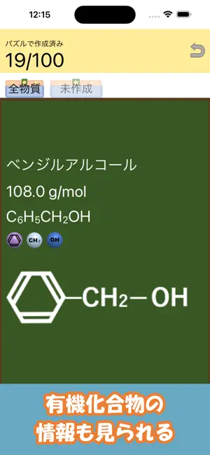 パズルや一問一答を通して、高校の有機化学に登場する物質名・化学式・構造式を覚えられます!無料で楽しみながら勉強できます。