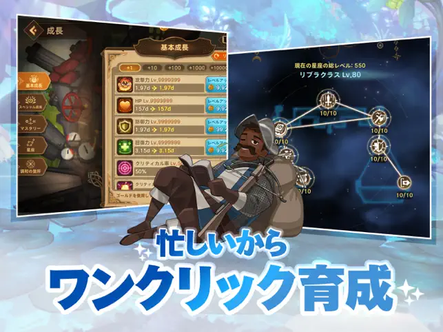 ご飯を食べてる時も、みんなが眠っている時も!英雄と要塞は無限に成長&無限に強化します!勝手に成長してくれる放置系RPG!エピックヒーローを収集して動く要塞と共に無限成長を経験してみて下さい!