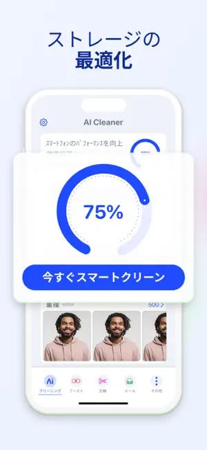» 写真と動画を圧縮 » プライベートファイルを保護 » 連絡先のクリーンアップ » イベントリムーバー スマートストレージクリーナー AI Cleanerを使ってAIの力を体験しましょう。AI Cleanerは、iPhoneのために最も迅速かつ効果的なクリーンアップを提供するように設計されています。 徹底的なクリーンアップが必要な場合に、包括的なクリーニング機能がすべてのアプリ機能を同時に使用し、最小限の時間で最大のストレージ容量の回復を実現します。 重複した写真と動画を削除 AI Cleanerは写真ギャラリーをスキャンして重複した写真や動画を見つけ、ワンタップで削除できます。大切な写真や動画を失うことなく容量を解放します。 スワイプして保持/削除 写真や動画を1つずつスクロールして、簡単なスワイプで保持するか、削除するかを決定できます。右にスワイプして保持、左にスワイプして削除―操作は簡単です。ギャラリーの煩雑さを整理整頓し、容量を解放し、重要な記憶だけ取っておきましょう。 写真と動画を圧縮 写真や動画を圧縮することで、数回クリックするだけでスマートフォンの貴重な容量を開放します!ストレージの設定を高、中、低の圧縮レベルから選択し、スペースをシームレスに解放します。 プライベートな写真と動画を保護する 写真、動画、連絡先をプライベートストレージスペースで保護し、秘密を保持することで思い出と大切な情報の安全を簡単に保つことができ、セキュリティとプライバシーをさらに強化できます。不正なアクセスからあなたの情報は保護されていますのでご安心ください。 連絡先のクリーンアップ 不完全で重複した連絡先がアドレス帳を圧迫していても心配いりません。AI Cleanerは、連絡先リストを整理して関連性を保つために、連絡先リストを識別子てクリーンアップするのに役立ちます。 過去のイベントを削除 お使いのカレンダーは過去の古いイベントでごちゃごちゃしていますか?AI Cleanerは古いイベントを素早く検出して削除し、スケジュールの空き容量を増やします。 ■ 容易なストレージ管理 » 使いやすい:AI Cleanerの直感的なインターフェイスにより、手動またはAIにより簡単に容量を解放できます。 » AIによるクリーニング:AI Cleanerは、デバイスを効率的にスキャンして、重複するアイテムや不要なアイテムを特定します。 » データセキュリティ:個人データの安全が保たれます。AI Cleanerは個人情報を保存しません。 » パフォーマンスの最適化:AI Cleanerを使用して、iPhoneのスピードと応答性を改善できます。AI Cleanerの高度なAI技術により、数秒でギガバイト単位のストレージ容量を解放できます。 » 定期的なアップデート:最高の体験を保証するために、定期的に修正と機能をアップデートし、AI Cleanerを最新の状態に保ちます。 ■ お問い合わせ: アプリのサポートや詳細をご希望の場合、以下にお問い合わせください。 info@aicleaner.app 利用規約: https://aicleaner.app/terms-of-use プライバシーポリシー: https://aicleaner.app/privacy-policy 今すぐAI Cleanerをダウンロードして、より高速で効率的なデバイスをお楽しみください!容量を解放し、写真ギャラリーとカレンダーを整理し、スマートフォンを最良の状態に保ちましょう。